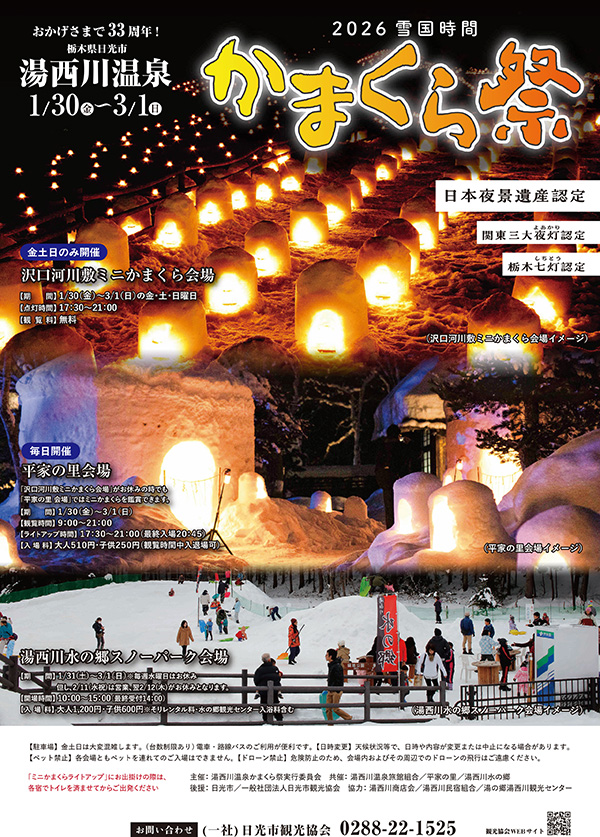 湯西川温泉 かまくら祭2026 のお知らせ