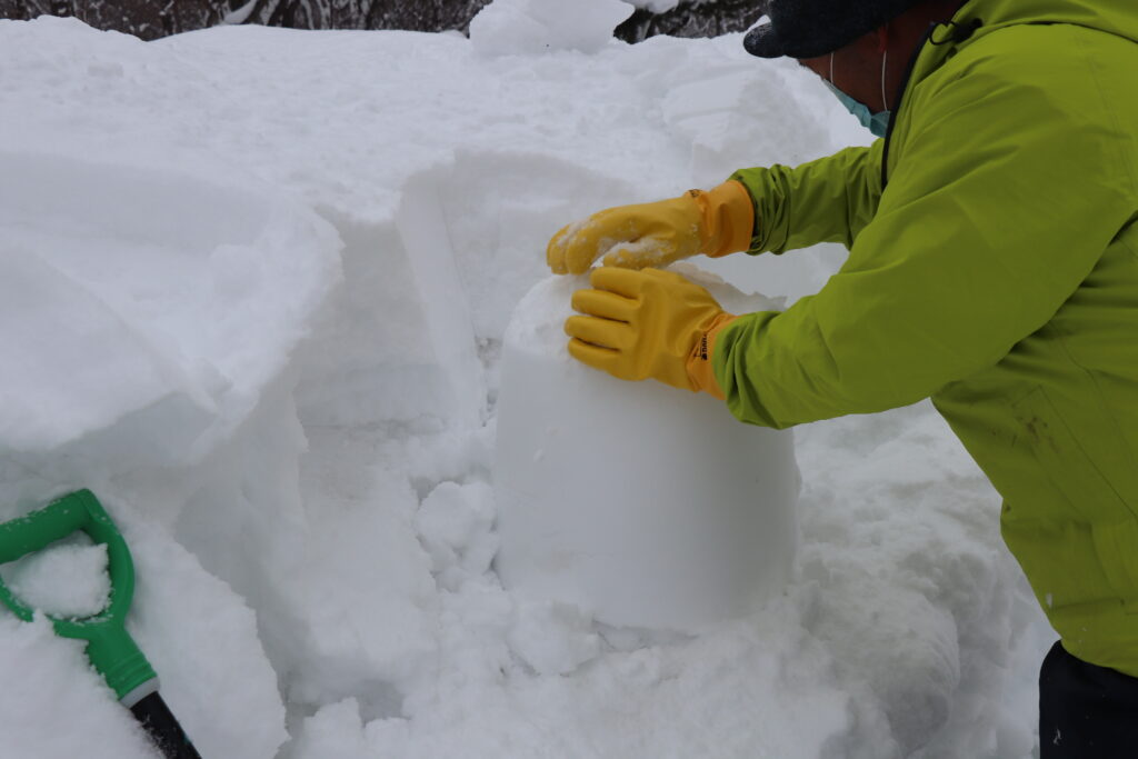 この無数のミニかまくら達は、一つ一つ、地元の方が手作業で作っています。